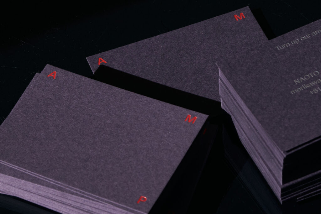名刺を積み重ねた写真はAMP(増幅)を意味しているようにも見える。